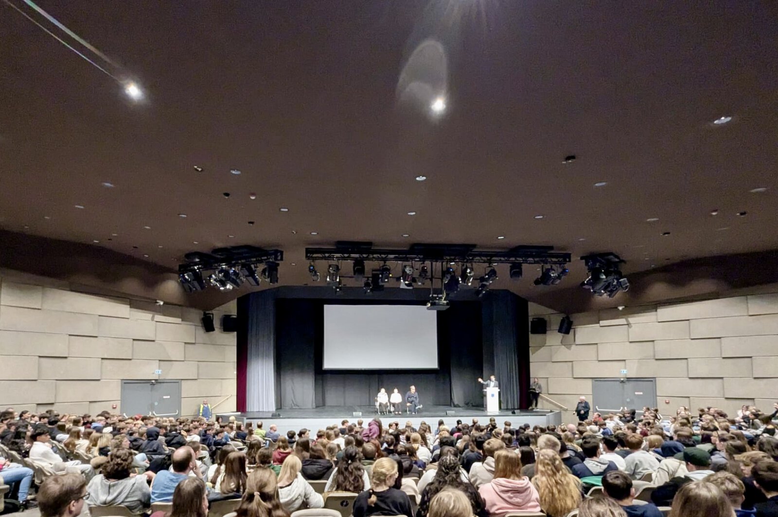 Mit vielen Klassen haben wir an der Filmvorführung Schwarzer Zucker – rotes Blut im Bürgerhaus Ibbenbüren teilgenommen. Gemeinsam mit rund 1.500 Schülerinnen und Schülern aus der Region erlebten wir dort die bewegende Lebensgeschichte der Holocaust-Überlebenden Anna Strishkova.